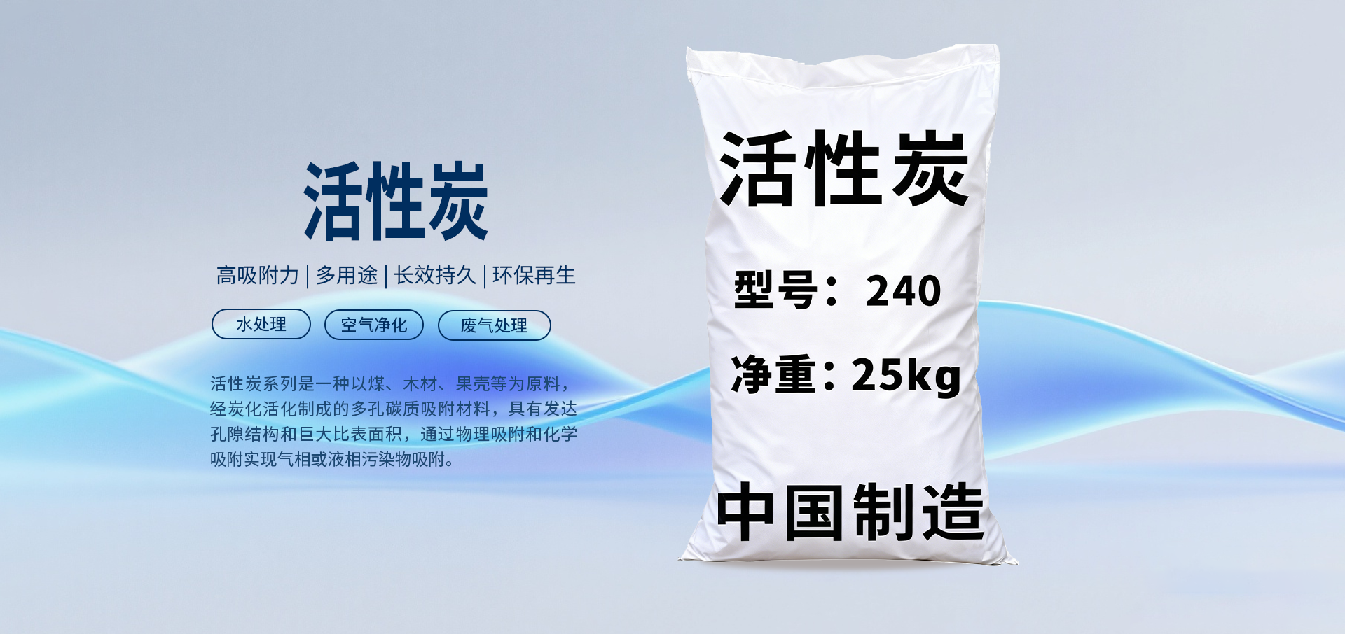 用于饮用水净化、工业废水处理、污水处理厂深度处理,去除有机物、余氯、异味等。